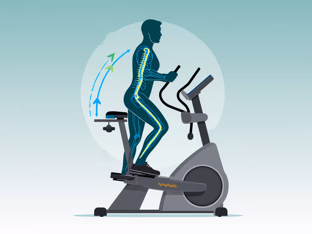 Beyond legs, many ellipticals include moving handles. Upper-body involvement matters if you have arm lymphedema (the repetitive motion of arm poles drives circulation in the deltoids and shoulder girdle). This dual-limb engagement is why ellipticals outperform stationary bikes for full-body lymphatic drainage exercise. See how ellipticals compare to bikes in our elliptical vs bike guide. The additional benefit: smooth flywheel or fluid motion produces almost zero impact shock. If you've spent months flinching at every step, that absence of jolt is genuinely freeing.